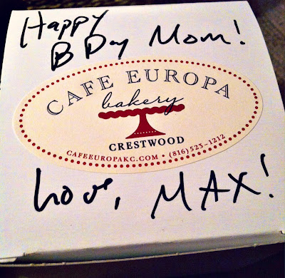 Ok...this photo DOES have to with chocolate and cake. I totally forgot about it until I came across it on my phone. How sweet is this little gesture to me from Max on his birthday? Billy took Max to get me a treat since his birth day was a little harder on me than it was on him ;)