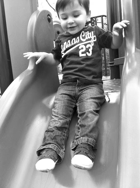 The first time I saw Max climbing the slide my first thought was to say "No, we go DOWN the slide!" but I didn't. I was screaming it in my head, though. I took a deep breath and remembered that Billy and I want the boys to learn for themselves even if it does mean a few bumps and bruises. So after a heated inner conflict I decided...climbing slides is ok. I gave Max some pointers such as "make sure no one is going down the slide first", etc. that I knew would probably be forgotten quickly.
